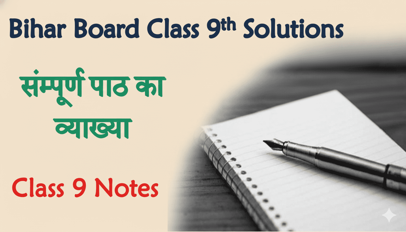 यह नोट्स NCERT और SCERT बिहार पाठ्यक्रम पर पूरी तरह आधारित है। इस पोस्ट में बिहार बोर्ड कक्षा 9 के हर विषय के सभी अध्यायों की पंक्तियों का हल दिया गया है, जो परीक्षा की दृष्टि से अत्यंत उपयोगी है। इस पोस्ट में दिए गए पाठों को पढ़कर आप मैट्रिक परीक्षा में बेहतरीन अंक प्राप्त कर सकते हैं। यहां दी गई व्याख्याएं पढ़ने से आपका पूरा कॉन्सेप्ट साफ हो जाएगा। सभी नोट्स बोर्ड परीक्षा को ध्यान में रखकर बनाए गए हैं। पाठ को सरलता से समझकर आप उसके सभी प्रश्नों के उत्तर दे पाएंगे। जिस विषय को पढ़ना है, उस पर क्लिक करने से उसका पूरा व्याख्या खुल जाएगा, जहाँ प्रत्येक पंक्ति का अर्थ दिया गया है।